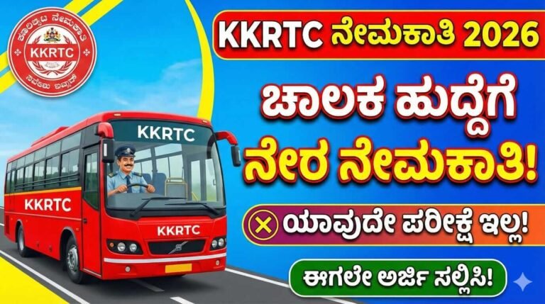 KKRTC ಚಾಲಕ ನೇಮಕಾತಿ 2026: ಲಿಖಿತ ಪರೀಕ್ಷೆ ಇಲ್ಲದೆ ನೇರ ಸಂದರ್ಶನ ಮೂಲಕ ಸರ್ಕಾರಿ ಉದ್ಯೋಗ – ಸಂಪೂರ್ಣ ವಿವರ ಸರ್ಕಾರಿ ಉದ್ಯೋಗದ ಕನಸನ್ನು ಹೊತ್ತಿರುವ ಮತ್ತು …